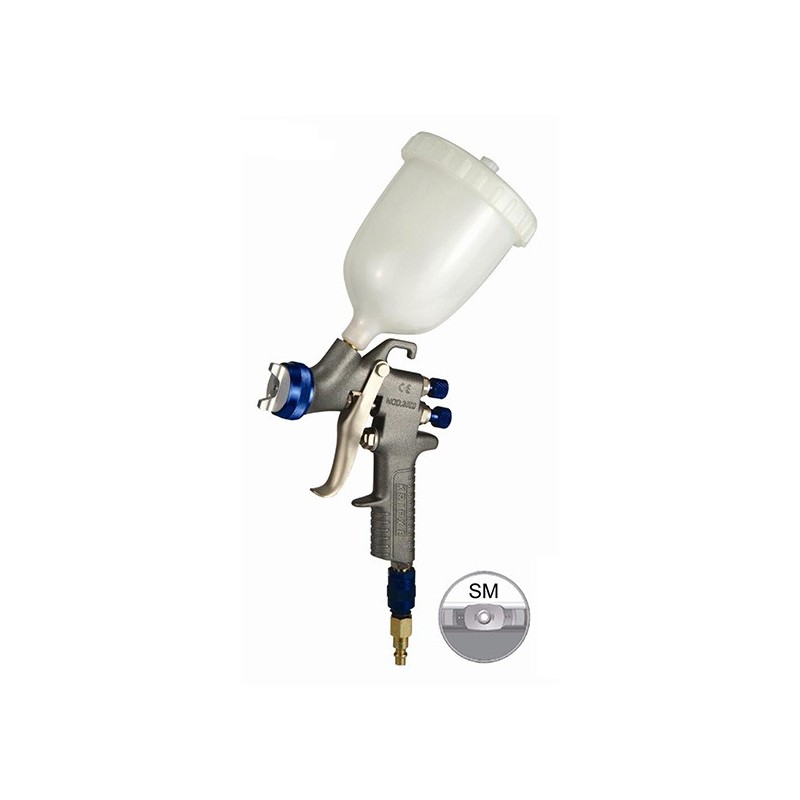 Pistola para retocar y pintar carrocerías, especialmente, pinturas monocapa, barnices hs y metalizados.