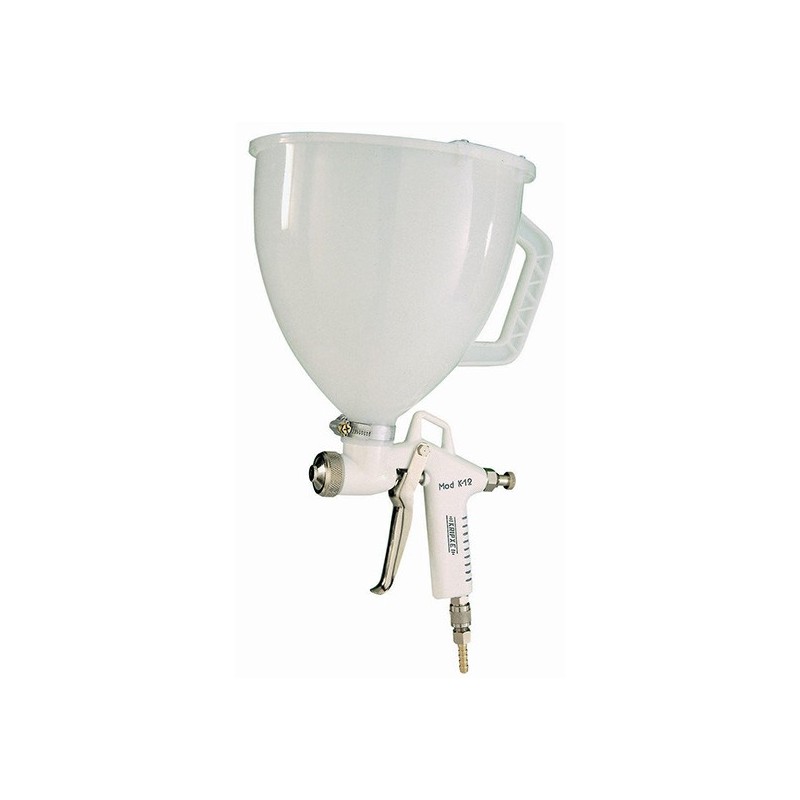 La pistola de gravedad KRIPXE K-12 es una herramienta de alto rendimiento diseñada específicamente para la aplicación profesional de gotelé y productos densos. Destaca en el sector industrial por su manejo ergonómico, funcionamiento simplificado y un bajo consumo de aire, lo que la convierte en una opción eficiente y duradera para trabajos de decoración y revestimientos técnicos.